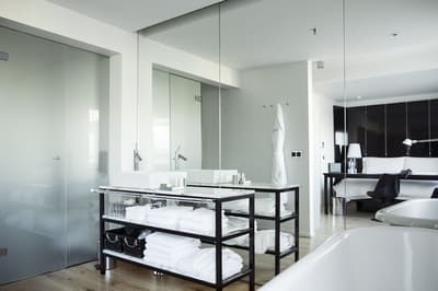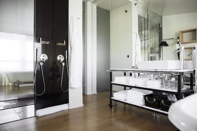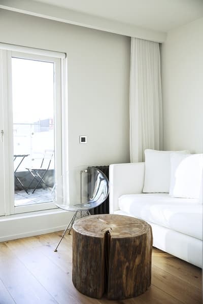 Dans un style résolument minimaliste, elle arbore un parquet, un mobilier tendance et se complète dans des tons noir et blanc. La chambre est dotée d’un lit king size et la salle de bains est équipée d’une grande douche à l’italienne, d’une baignoire pour les moments de pure relaxation ainsi que du chauffage au sol. Le tout dans une ambiance conviviale !