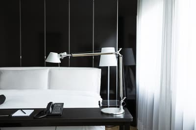 Peignoir, Pantoufles, sèche-cheveux et articles de toilette Aveda, Wifi haut débit gratuit disponible, enceintes Bang & Olufsen, Téléphone avec messagerie vocale, Coffre-fort et linge de lit Quagliotti.