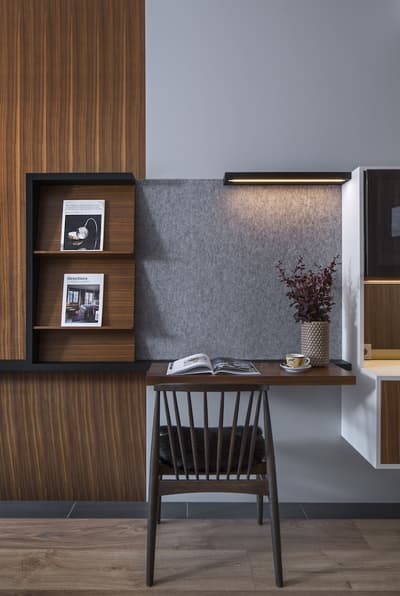 Simple et cosy, l’ambiance est merveilleuse. Elle laisse pénétrer la lumière naturelle pour une pièce lumineuse et accueillante. Le mélange de bois, de verre et de métal rend harmonieuse. Quelques touches de couleurs lui donnent du peps.