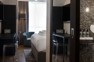 Vous hésitez entre le côté branché et chic et le côté historique et culturel ? N’hésitez plus ! Le Sand Hotel est tout cela et plus encore. L’histoire tout d’abord. Elle se reflète dans le choix de l’emplacement, sur la rue Laugavegu, qui autrefois montait vers des sources d’eau chaudes où le linge était lavé. Cette rue, aujourd'hui l’artère la plus fréquentée de la capitale islandaise Reykjavik, attire les badauds locaux comme les touristes. Vous vouliez du mouvement, l’animation nocturne de pubs typiques, les plats de poissons cuisinés à l’islandaise ? Vous aurez tout ça ! Dans ce quartier où le port n’est jamais loin, les bâtiments historiques et musées de la ville foisonnent et permettent de super balades pédestres. A 650 mètres de l’hôtel, n’oubliez pas d’aller visiter l’inédit Musée phallologique (du pénis) islandais… Vous pourrez envoyer de spectaculaires photos à vos amis (le wifi est gratuit à l’hôtel) ! La culture, ce sont aussi les deux boutiques familiales et centenaires au rez-de-chaussée de l’hôtel, une boulangerie qui propose des spécialisés irrésistibles, et une boutique de mode masculine sur mesure au charme vintage. Et le Sand Hotel a tenu compte de tout ce contexte pour décorer avec une élégance très Art Déco ses 78 chambres. Meubles contemporains et œuvres d'art locales (toiles textuelles de Birgir Andrésson, photographies de Sigurdur Gudmundsson) ornent chaque pièce. Et les coussins sont fabriqués avec les chutes de tissus du tailleur du rez-de-chaussée.