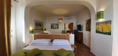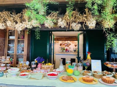 Tous à la ferme ! Dans un cadre ultra-bucolique, entre roseraie, potagers et citronniers, l’Agriturismo Fattoria Terranova accueille les amoureux de campagne. « Fattoria » signifie en effet ferme en italien. Et il s’agit d’une véritable exploitation agricole, qui produit sa propre huile d’olive, ses légumes, ses confitures et eaux-de-vie. A peine posé les valises, vous partez à la découverte de l’énorme terrain, où se nichent plusieurs bâtiments qui abritent les chambres. Vous traversez la roseraie avec ses 300 espèces de roses, les jardins-potagers, les vignes et oliviers. Les plus petits seront ravis de découvrir un terrain de jeu et les animaux de la ferme ! Les parents, eux, se prélasseront dans la petite piscine à l’ombre de la chênaie. Et après cette belle découverte, ils enfileront leurs tabliers ! Ici, vous mettez les mains à la pâte (à pizza) pour une immersion totale dans l’univers culinaire de la Campanie. Vous ne connaissez pas le citron de Sorrente ? Un atelier sur l’utilisation de ce précieux agrume s’impose, et surtout… une dégustation de l’excellent Limoncello fait maison ! Et la Fattoria Terranova ne ravit pas seulement vos papilles, mais aussi vos yeux ! Vous profitez d'un emplacement incroyable avec une vue splendide sur les golfes de Naples et Sorrente. Ça vous dirait d'en profiter pendant un apéritif, avec un verre de rouge ? Enfin, le soir, place à la star de la maison : la cuisine ! Dans la coquette salle de resto – un hybride entre grange et serre,— vous découvrez le meilleur de la slow food. De la ferme à la table, ce n’est pas qu'un concept ici ! #SlowLife