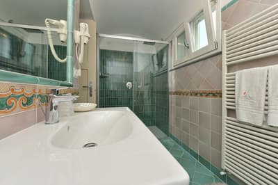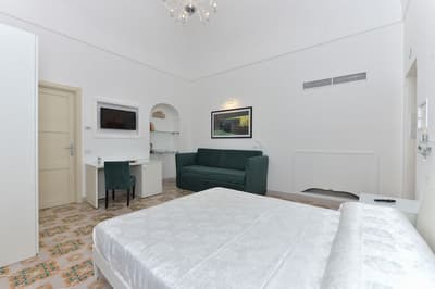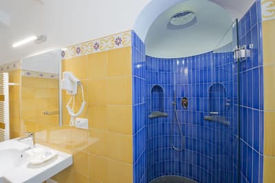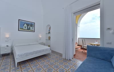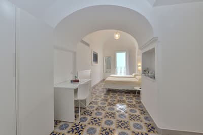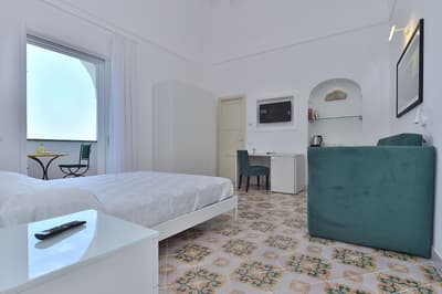 L’ensemble est dans un style de décoration artistique avec un mobilier de style méditerranéen, des sols décorés avec des carreaux peints à la main de Vietri sul Mare et se complète dans une dominance de blanc. La chambre est dotée d'un lit double et après une journée passée à explorer la côte, vous aimerez rentrer chez vous et vous rafraîchir dans la grande douche arrondie aux carreaux vert émeraude éclatants. Le tout dans une ambiance apaisante !