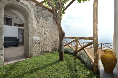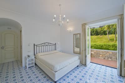 Lumineuse, l’ensemble est dans un style de décoration artistique avec un mobilier de style méditerranéen, des sols décorés avec des carreaux peints à la main de Vietri sul Mare et se complète dans une dominance de blanc. Vous pourrez profitez du parfum des citronniers et des buissons de lavande pendant que vous vous détendez dans cette belle chambre. Après vos activités de la journée, prenez un bain relaxant dans la salle de bains en marbre bleu et détendez-vous dans le confortable lit double. Le tout dans une ambiance apaisante !