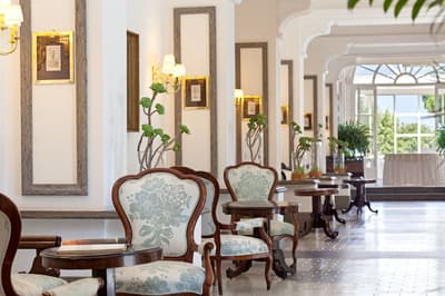 Êtes-vous prêts pour un véritable voyage dans le temps ? Un voyage qui vous mène sur les traces des écrivains du Grand Tour ? Direction le Grand Hôtel Cocumella, lové dans un superbe parc à bord de falaise. Un coin idyllique, jadis fréquenté par Goethe, Mary Shelly et Freud ! Perchés sur la côte de de Sorrente, vous profitez d’une vue à couper le souffle sur toutes la baie de Naples ! L’ancien monastère jésuite (16e), transformé en hôtel à la fin du 18e, se veut un îlot de plaisir dans cet endroit juste incroyable. "...A chaque instant les sens, enveloppé de plaisir, ils murmurent que c'est le paradis..." : c’est ainsi que l'écrivaine Mary Shelley a décrit le Cocumella. Et c’est toujours d’actualité sous la gracieuse houlette de Gaia Del Papa. Vous allez adorer le charme du mélange de l'élégance du Vieux Monde et des équipements ultra-modernes. Le bâtiment s’articule en effet autour de l’ancien cloître avec son église ! Posez vos valises et profitez de la quiétude parfaite du grand parc à la mode romantique. Flânez entre citronniers et plantes exotiques, puis piquez une tête dans la piscine semi-olympique avant d'aller vous faire chouchouter dans le spa. A la tombée de la nuit, empruntez l'escalier parmi les grottes de tufs … Surprise : vous débarquez sur une petite plage privée de sable ! Peut-être que d'ici, vous apercevez le grand voilier d’époque (construit en 1880) qui revient de son excursion à Capri... #perfection