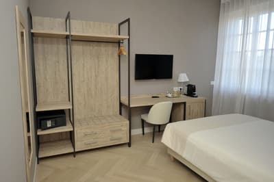 Bienvenue au Bergamo Inn 43, un hôtel vraiment très pratique dans Cita Bassa de Bergamo ! Si vous cherchez une adresse juste pour dormir car vous voulez explorer les restos de la ville pour manger et boire, vous êtes au bon endroit ! L’emplacement est juste idéal, à deux pas du funiculaire pour atteindre la ville haute. Et le bâtiment ancien est vraiment plein de charme ! Très style vénitien ! Même si vous ne trouverez pas un bar pour vous détendre dans l’hôtel et un petit déjeuner à engloutir le matin, les chambres et leur salle de bain ont le mérite d’être spacieuses ! On est clairement sur du less is more côté déco, avec des tons très naturels comme du bois clair, du gris et du blanc. Et le truc cool : vous avez votre machine Nespresso sur votre bureau ! Et ça, c’est plutôt sympa le matin avant de partir en vadrouille ! Bref, c’est un hôtel plutôt indiqué pour les couples qui souhaitent bien dormir et profiter à fond de l’atmosphère de la ville. Et petit conseil : essayez le breakfast dans le café en bas de l’hôtel, il est top !