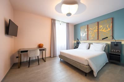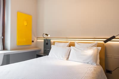 Une vraie pépite au cœur de la vieille ville de la Citta Alta de Bergame ! Vous allez tomber littéralement amoureux de cet endroit idyllique, parfait pour vivre la dolce vita en Lombardie. Rien que l’arrivée est magique : les rues pavées, le charme et l’histoire des pierres anciennes dans cette forteresse vénitienne antique. Une merveille ! Ce qui frappe, c’est cette immersion dans la végétation et l’énergie de la ville. La maison jaune vous ouvre ses portes et à l’intérieur, on a le plaisir de retrouver ces vieilles pierres, notamment dans la salle du petit déjeuner, mais aussi des clins d’oeil à l’identité design de la région. Après tout, Milan, la capitale en la matière, se trouve à quelques kilomètres ! Les pommes griffées et colorées déclinées en milles nuances sont rigolotes et jolies. On les retrouve sur la terrasse et dans les chambres à la fois minimalistes et ultra-confortables. Avec cette vue impressionnante sur la vallée et la Citta Bassa... Sur place, vous avez un resto étoilé signé par un chef qui collectionne 8 macarons Michelin en tout. Une cuisine italienne contemporaine intelligente et sublime à s’offrir absolument ! Le matin, on se régale de fromages et de charcuteries de la région, avec des gâteaux italiens divins. Et en plus, l'hôtel s'implique dans le développement durable, la lutte contre le plastique et le gaspillage. Bref, une adresse à retenir pour escapade en amoureux magique !