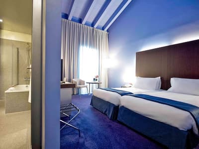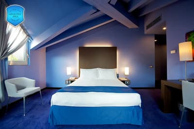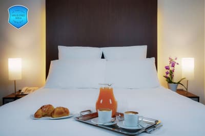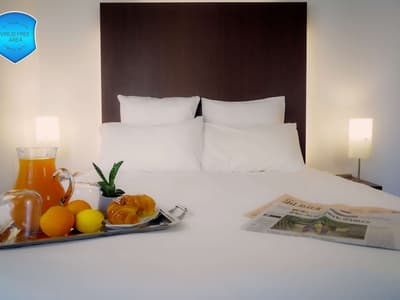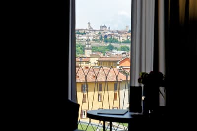 Bienvenue au Mercure Bergamo Palazzo Dolci, installé dans un ancien palais de la Citta Bassa ! Quand on arrive, on est aussitôt séduit par cette façade massive à l’esprit très baroque. Les murs roses sont tellement dans l’esprit italien… On adore ! Et les arches, les balcons sculptés : une merveille... A l’intérieur, on retrouve vraiment la touche Mercure, internationale et classique. Hall et couloirs clairs et lisses, peintures grand format aux murs et banquettes violettes, on y est ! Côté chambres, vous ne serez pas surpris : c’est confortable, simple et efficace. Et certaines ont une vue sublime sur la colline et la Citta Alta. Envoutant ! Le matin, vous pouvez compter sur le petit déjeuner, très international, pour faire le plein d’énergie avant d’aller arpenter les rues de Bergame. Et le soir, rendez-vous au bar de l’hôtel pour siroter un bon cocktail. On est loin de la petite maison d’hôtes pleine de charme et d’attention, mais c’est une valeur sûre ! L'idéal si vous souhaitez découvrir la gastronomie et l’histoire de la ville en dehors de l’hôtel.