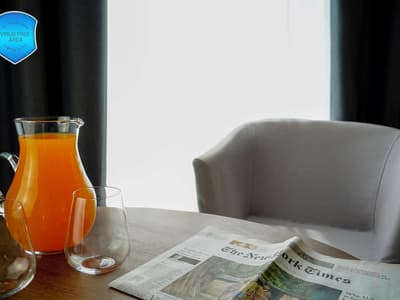 L’ensemble est dans un style de décoration contemporain avec un sol en moquette, un mobilier tendance, des luminaires design et se complète dans des tons neutres. La chambre est dotée de deux lits simples que vous retrouverez après vos activités de la journée et la salle de bains en marbre est équipée d’une baignoire et d’une douche. Le tout dans une ambiance cosy !