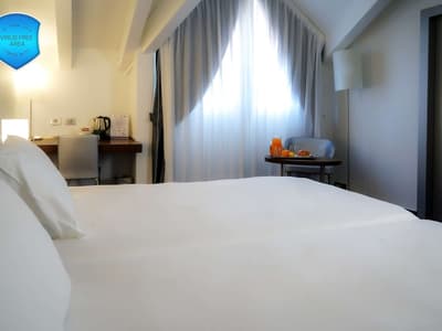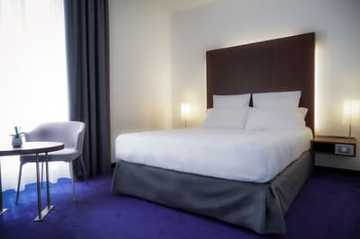 Climatisation, TV LCD Sat 81 cm+, WIFI gratuit, Coffre, Téléphone direct, Minibar avec boissons sans alcool offertes, Machine à café Nespresso, Large gamme de produits de courtoisie, Journal sur demande à la réception.