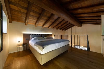 L’ensemble est dans un style de décoration contemporaine avec un plafond caractérisé par des voûtes en brique et en pierre du XVIIe siècle; à l'origine, ces pièces servaient de cave et de glacière pour conserver les aliments. La chambre est dotée d’un lit confortable et la salle de bains spacieuse est équipée d’une cabine de douche. Le tout dans une atmosphère zen !