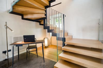 L’ensemble est dans un style de décoration contemporaine avec un plafond caractérisé par des voûtes en brique et en pierre, un mobilier design, un beau parquet et des accessoires tendances. Elle est composée de deux espaces avec un lit double et un canapé-lit double ou twin et d’un lit bébé. La salle de bains dispose d'une douche émotionnelle pour stimuler les sens et vous offrir un moment de détente. Le tout dans une atmosphère zen !