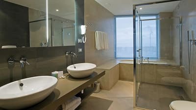 Cette belle chambre se prolonge et procure une sensation d’espace et d’ouverture. Plus spacieuse, c’est du grand confort ! D’une dimension généreuse, la terrasse est aménagée de belles chaises et profite d’une vue exceptionnelle sur l’océan turquoise. Elle accommode un grand lit et dispose d’un canapé-lit et de fauteuils dans le coin salon. Salle de bain avec douche à effet de pluie.