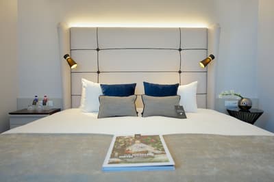 Dans un style de décoration contemporaine et soignée, elle arbore un beau parquet, un mobilier tendance et se complète dans une dominance de blanc. La chambre est dotée d’un lit king et un lit bébé peut être ajouté sur demande. La salle de bains en marbre est équipée d’une douche ou d’une baignoire, ainsi que des produits Roberto Cavalli gratuits. Le tout dans une ambiance zen !