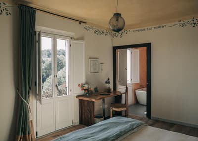 Dans une élégance discrète, elle arbore une palette de couleurs italiennes vibrantes, des matériaux locaux, d'antiquités, des fresques peintes à la main par l'ancien artiste en résidence Jay One Ramier aux tuiles siciliennes en écailles de dragon faites à la main, un clin d'œil à l'homonyme du bâtiment, San Michele, qui abattu le dragon. La chambre est dotée d’un lit king-size double ou twin et la salle de bains attenante est équipée d’une baignoire et d’une douche à effet pluie. Ambiance décontractée!