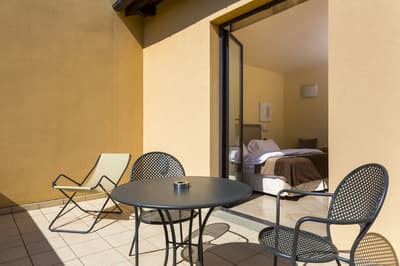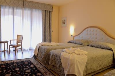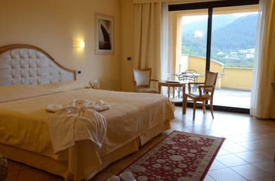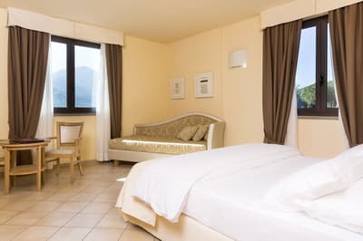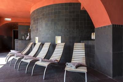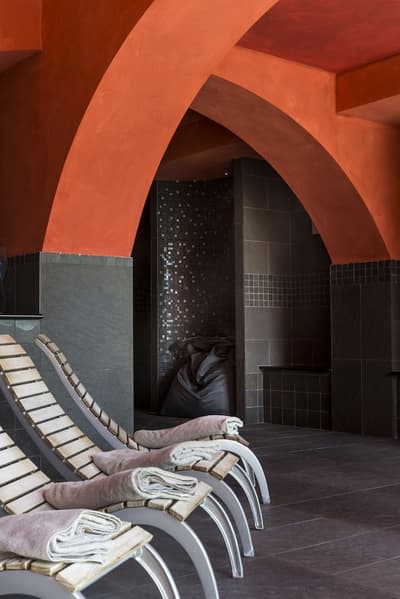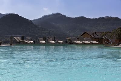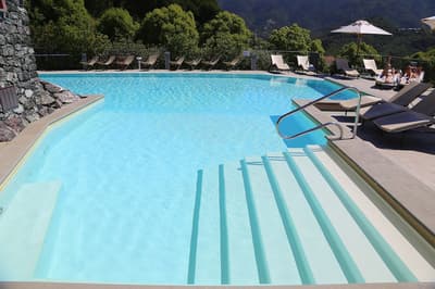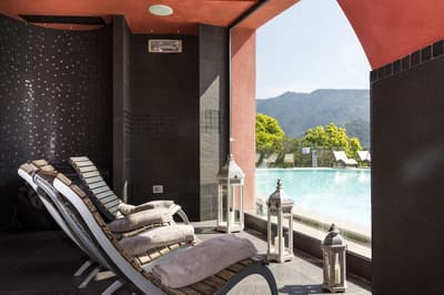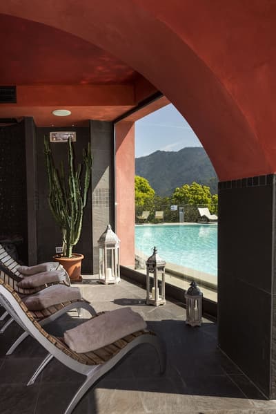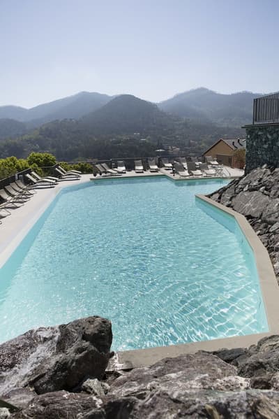 Si vous aimez les grands espaces, le Park Hotel Argento vous plaira à coup sûr ! Perché sur une colline de Levanto, c’est un vaste complexe au vert. Ici, on respiiire ! Et on joue à fond la carte du bien-être. Le spa est vraiment génial. C’est un vrai temple du zen : vous avez vu la statue de buddha qui veille sur son entrée ? L’espace est beau, tout recouvert de grandes dalles grises, d’une mosaïque noire et blanche qui scintille, et les voûtes sont peintes en rouge. Dispersés un peu partout, les transats en bois vous invitent à un total lâcher-prise. Vous allez pouvoir mettre en place une alternance entre ceux-ci et ceux de la super piscine extérieure ! Celle-là d'ailleurs, regardez comme son bassin est immense... Il y a même une cascade qui s’écoule de la paroi rocheuse, pour un hydromassage naturel ! Le cadre est vraiment top avec les pins et les plantes méditerranéennes tout autour. Mais que dire alors de cette vue ? Sublime serait peut-être le mot ! Imaginez-vous au beau milieu d’un cirque de collines arborées, avec quelques maisons dispersées ici et là. On a la géniale impression d’être perdu en pleine nature, dans une vallée presque sauvage. Pourtant, la côte de la Riviera italienne n’est qu’à quelques minutes à pied !