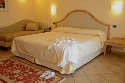Simple, mais confortable, elle a tout le nécessaire pour un séjour des plus agréables. Cette belle chambre baigne dans une atmosphère reposante et sereine. Elle accommode un grand lit et dispose d’un canapé et de belles chaises dans un coin de la pièce. Salle de bain chic.