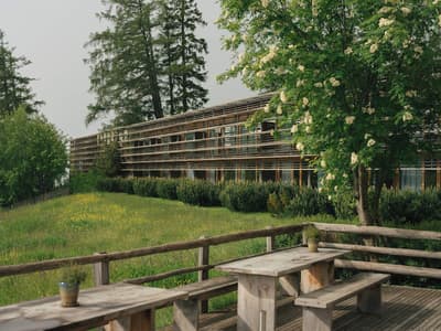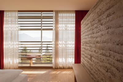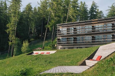 Situé à 1500 m d’altitude, le Vigilius Moutain Resort clame haut et fort sa devise : ""Eco, not ego"". L’accès se fait uniquement par téléphérique. Construit en bois, en pierre et en verre, l’hôtel gît à l’instar d’un arbre immense qui se serait couché au cœur de la forêt de mélèzes environnante. Le bâtiment est un véritable hommage à la nature, hyper design, et la sérénité y est reine... A tel point que vous devrez renoncer la grande majorité du temps à votre smartphone car ici, vous viendrez faire une détox digitale en plus de prendre soin de vous ! L’hôtel impose en effet des zones ""digital free"" notamment aux restaurants et au centre de bien-être et désactive le wifi à partir de 23h pour vous garantir un sommeil régénérant, sans radiations électromagnétiques. Du côté du Vigilius Mountain Spa, les rituels associent produits alpins et médecine orientale. Testez le bain au foin qui libère des tensions et stimule la circulation ! Les herbes et plantes médicinales utilisées sont d’ailleurs cueillies à 1 700 mètres d’altitude. Le bain à l’arnica et au millepertuis est aussi excellent contre les douleurs musculaires. Que diriez-vous d’un massage au quartzite argenté, en combinaison avec trois huiles chaudes, pour une sensation de relaxation profonde et de légèreté ? Votre détente se poursuivra au choix dans la piscine intérieure, plein sud, ou extérieure, à débordement. Cette dernière s’étend devant un panorama de cimes, à couper le souffle. L’eau mais aussi le feu sont partout, via les fontaines et les jets d'hydrothérapie, et de superbes cheminées devant lesquelles il fera bon vous blottir en fin de journée…