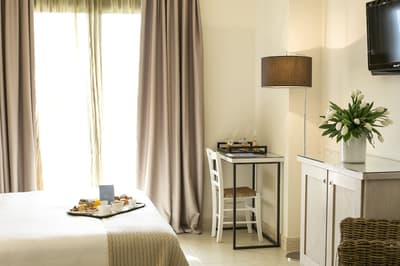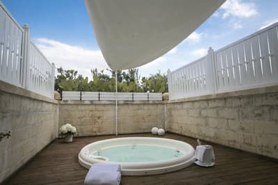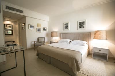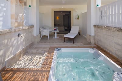Dans une décoration contemporaine et raffinée, elle comprend un beau carrelage, un mobilier en bois clair, des accessoires tendances et se complètent dans des tons chaleureux. La chambre est dotée d’un lit king-size ou de lits jumeaux et peut accueillir un lit bébé sur demande. Après vos activités de la journée, vous pourrez vous rafraîchir dans la salle de bains en marbre fin italien équipée d’une baignoire jacuzzi walk-in avec pomme de douche pluie ou d'une grande douche à l'italienne. Le tout dans une atmosphère relaxante !