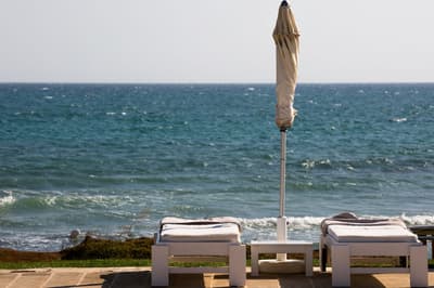 Spacieuse, elle dispose d’une vue latérale sur la mer que vous pourrez contempler à loisirs. Située au premier étage, elle profite d’un balcon privé équipé de transats d’où vous pourrez contempler le paysage en toute intimité.