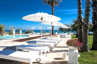 Peut-on allier détente absolue et découverte de la culture ? En ça dans un cadre super chic à deux pas de la mer ? Oh que oui ! Bienvenue au charmant boutique-hôtel Le Canne Bianche Lifestyle Hotel ! Niché dans une zone réservée, dans la petite localité Torre Canne di Fasano, vous êtes à 60 mètres de la mer ! Et vous êtes tout de suite scotché devant l’élégance de cette villa style néoclassique. Toute blanche, elle se dresse entre palmiers et cactus devant une sublimissime piscine avec son jacuzzi adjacent. Au-delà de l’azur de la piscine… le bleu foncé de la mer. Waouh, ça mérite un post Insta ! Traversez la pelouse de la propriété, jusqu’au tout petit portail blanc … ouvrez-le ! Hop, vous êtes direct' sur la plage privée, les pieds littéralement dans l’eau ! Mais avant le plouf, visite de l’intérieur. Récemment restauré, le Canne Bianche Lifestyle Hôtel séduit par sa simplicité élégante. Chaque détail est pensé pour inspirer une sensation de calme et de luxe authentique, à l’image des céramiques typiques des Pouilles. L’hôtel est adepte de la philosophie slow, l’environnement invite au dolce farniente. Un télescope pour admirer les étoiles, un piano pour une douce musique de fond, et partout des baies vitrées sur l’azur du ciel et de la mer. Ne vous reste qu'à découvrir le sublime spa et ses massages inspirés de traditions ancestrales ! Ensuite, vous irez chiller au chouette bar Cumino avec un cocktail, vue sur le sunset. #LivingYourBestLife