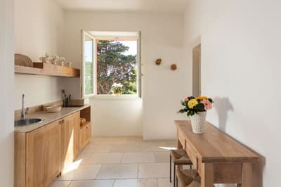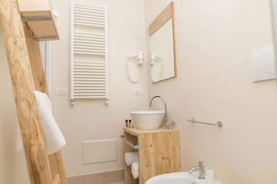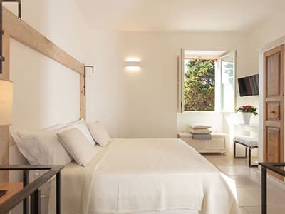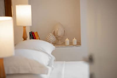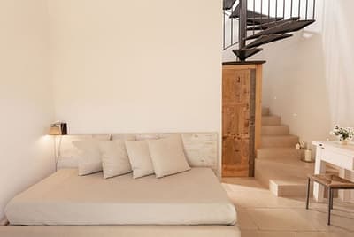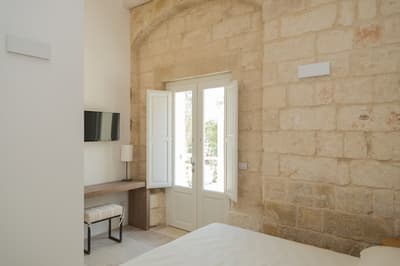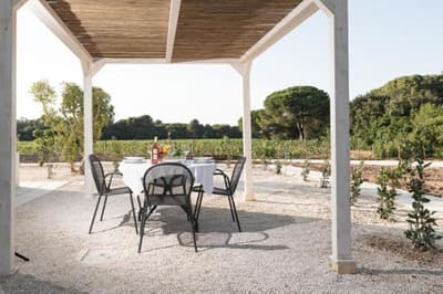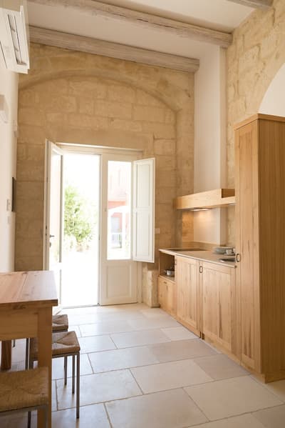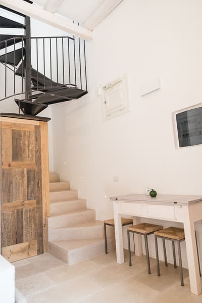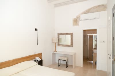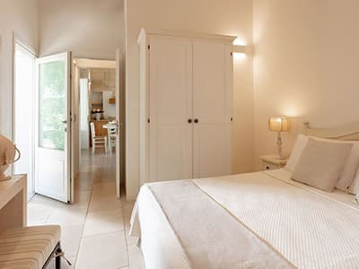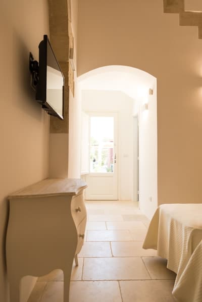 Elle donne accès à une large terrasse solarium pour vous détendre et contempler la vue sur la sublime campagne des Pouilles, tout en sirotant votre café du matin. À noter que la suite a été créée là où habitait le ‘Massaro’ avec sa famille. Le ‘Massaro’ était celui qui s’occupait des activités agricoles et qui était directement responsable des récoltes du maître.