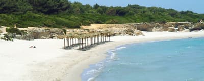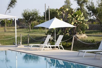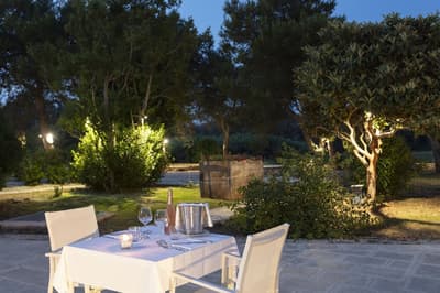 La Baia dei Turchi (ainsi nommée à cause de l'attaque turque de 1480), c'est une longue étendue de sable blanc adossée à de grands pins. Blottie juste derrière ces pins vous attend la Masseria Mongiò dell’Elefante... Et c'est vraiment super rare, une masseria (ferme traditionnelle) avec un accès direct à la plage ! Un petit chemin dans la pinède vous mène jusqu'à la rade aux eaux cristallines en seulement 7 minutes. Un air de Caraïbes... Dans ce décor grandiose, la Masseria, elle, joue la carte de l’ambiance minimaliste et même un poil austère. Les extérieurs sont très simples : deux bâtisses rectangulaires en pierre. Les matériaux et les couleurs des intérieurs sont éco-compatibles. Les tons neutres ne font que rehausser le camaïeu de vert des champs de vigne et de la pinède entourant l’hôtel. Si vous aimez la déco sobre (un peu trop pour certains), ça tombe bien ! De toute façon, ici, vous profitez surtout des extérieurs. Quand vous ne faites pas bronzette sur la plage de sable sauvage, vous allez faire un plouf dans la grande piscine d'eau salée. Ensuite, vous vous laissez tenter par un massage à l’air libre ou par un petit tour au spa Ipogeo. Et en fin de journée, vous faites une visite guidée d’un des domaines voisins. Histoire de découvrir le Negro Amaro, ce cépage rouge noble qui vous donne l’impression de boire le soleil du Salento !