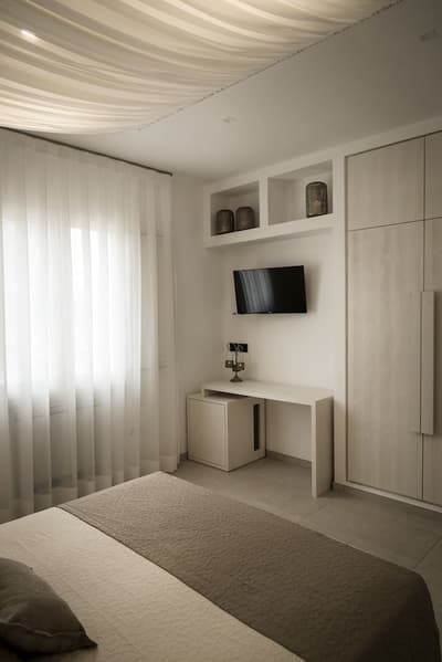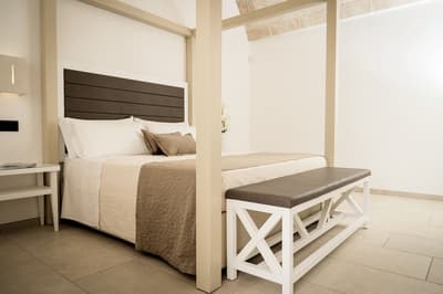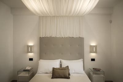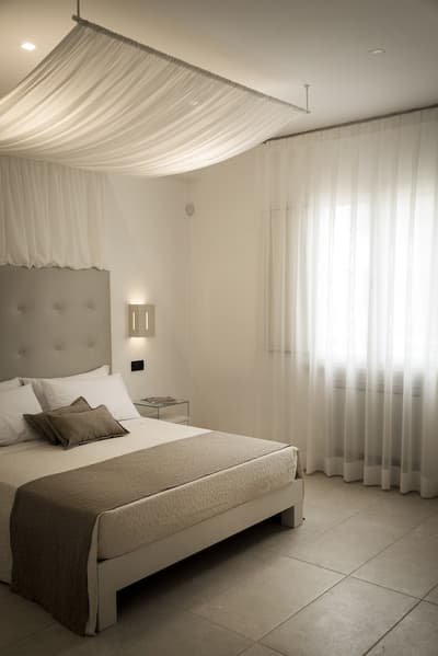 La décoration est plutôt minimaliste et charmante avec un beau carrelage, des lignes blanches simples qui caractérisent l’intérieur des chambres, un mobilier pratique et des voûtes en berceau typiques de Lecce. La chambre est dotée d’un lit à baldaquin et la grande salle de bains privée est équipée d’une douche. Le tout dans une atmosphère cosy !