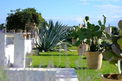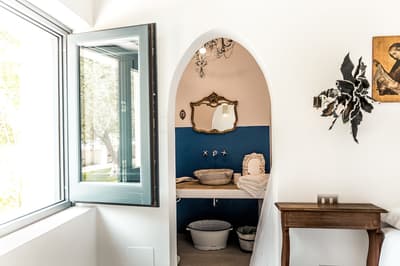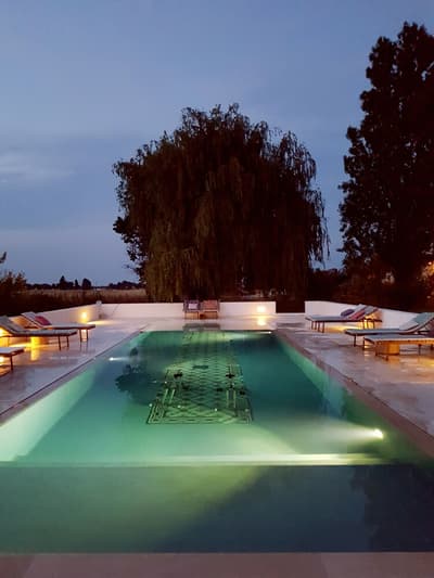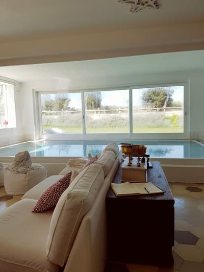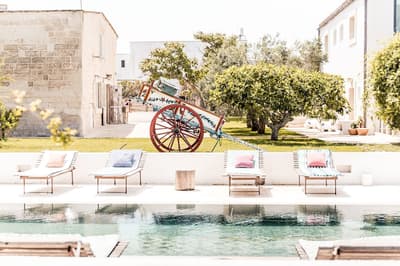 Une petite église en pierre à droite, une ferme à gauche, et vous voilà devant un enclos où des chevaux galopent en liberté... Juste derrière surgit une jolie petite villa, dans un grand jardin encadré d’oliviers, avec une chouette piscine au fond. Bienvenue à la Masseria Prosperi, une petite maison d’hôte chic – six rooms only ! Mais attention, rebroussez chemin si vous n’aimez pas la compagnie poilue : ici, c’est aussi une ferme aux animaux ! Chevaux, poneys, ânes, chèvres et oies se baladent dans les grands enclos. Chats et chiens cherchent vos caresses. Les hôtes partagent leur amour pour la nature sauvage de ce coin du Salento, entre terre et mer ! Ici, vous n’êtes pas simple touriste, mais visiteur curieux, attentif aux textures authentiques, aux parfums, aux couleurs. A l’intérieur de la villa, on respire une simplicité rurale mais raffinée. Objets déco fabriqués à partir d’anciens outils agricoles, meubles de récup’ en bois… stylé ! Depuis le joli espace commun, vous apercevez la piscine intérieure, derrière ses baies vitrées qui s’ouvrent sur le jardin. Elle est reliée à un petit spa, tout mimi avec son hammam bleu et blanc. Et en fin de journée, ne soyez pas timide, socialisez avec les hôtes et les autres clients ! Lors des dîners en terrasse, autour d’une grande table et d’une bouteille de vin, on se raconte sa journée. Arrivez en client, repartez en ami ! #SlowTravel