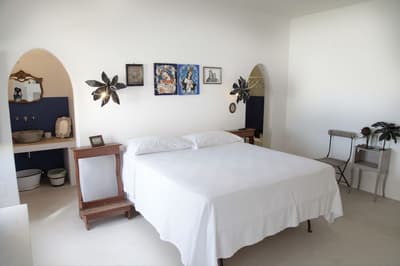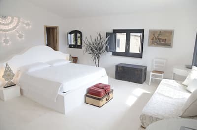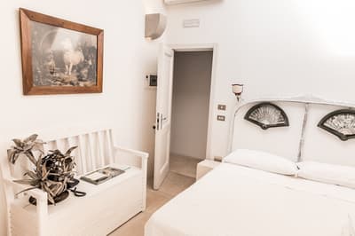Cette chambre supérieure dispose d’un accès direct au jardin de la Masseria et est située au rez-de-chaussée. Vous pourrez vous détendre et prendre le frais tout en sirotant votre boisson préférée.