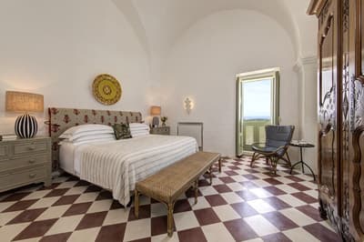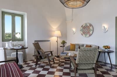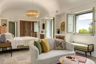 Dans un décor qui allie sophistication contemporaine et style italien, elle comprend des étoffes luxueuses et un ameublement soigné. La chambre est dotée d’un lit king size super confortable et la spacieuse salle de bains en pierre de Trani est équipée d’une douche à l’italienne. Le tout dans une atmosphère idyllique !