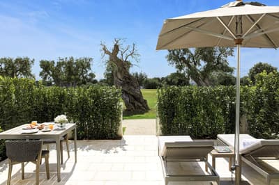 Spacieuse, elle profite d’une terrasse privée et d’un jardin d’où vous pourrez vous détendre, prendre le frais, tout en contemplant la vue sur l'oliveraie séculaire, la verdure du parcours de golf ou la mer Adriatique étincelante.