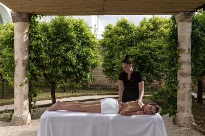 Tenté par une adresse alliant luxe, nature, traditions et déco sophistiquée ? Surplombant la côte Adriatique, au milieu d’oliviers centenaires, vergers et vignes, se dresse la Masseria Torre Maizza. Ancien fort devenu exploitation agricole (masseria), le domaine est racheté par le groupe Rocco Forte Hotels, qui le transforme en adresse de luxe, en 2019. La masseria, avec sa tour de guet d’origine, est lovée dans un jardin aux parfums de myrte, jasmin et fleurs d’orangers. Une végétation épanouie qui crée un cadre ultra-chic à cette bâtisse aux murs blanchis à la chaux et aux sols en pierres de Trani. Vous êtes tout de suite séduit par l’ambiance raffinée et le calme absolu qui règnent ici... Les intérieurs ont été dessinés par la designeuse Olga Polizzi. A l'art et à l'artisanat traditionnels des Pouilles s’ajoute une touche hyper sophistiquée grâce à des éléments de design italien contemporain. Vos valises sont posées ? Marchez pieds nus entre les bougainvillées pour rejoindre la sublime piscine aux allures de temple avec sa majestueuse colonnade. Vous allez en faire, des jaloux sur Insta ! Une petite boisson rafraichissante au Pool Bar, puis enfourchez un vélo : direction le Beach Club pour un plouf dans la mer, suivi d’un massage sur les lits de plage king-size ! Et pour terminer la journée, c'est cocktail sur le rooftop. Profitez d'un super coucher de soleil avant de vous goûter aux délices apuliennes sous la pergola chic...