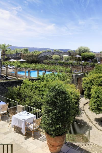 Cette luxueuse chambre dispose d’une terrasse avec transats pour vous relaxer et profiter du soleil tout en contemplant la vue sur le grand jardin privé, en sirotant votre cocktail préféré. À noter que certaines chambres peuvent être communicantes avec d’autres de même catégorie pour créer un seul appartement.