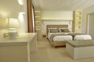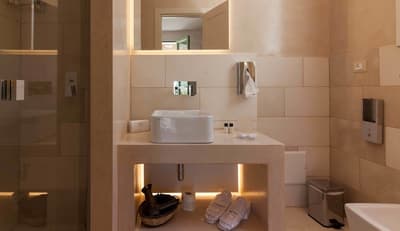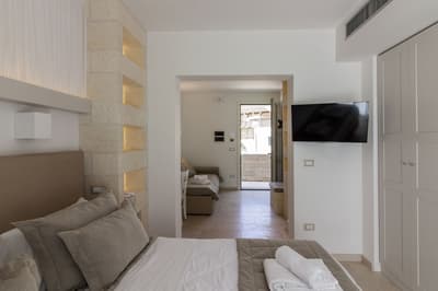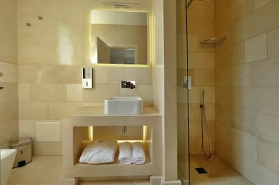 La décoration est plutôt charmante et contemporaine avec des matériaux et des finitions luxueuses et se complète harmonieusement dans des tons ocres. La chambre est dotée d’un lit double king-size et la salle de bains est équipée d’une cabine de douche vitrée. Si vous êtes en voyage d’affaires, vous pourrez travailler sur le magnifique bureau en pierre et bois. Le tout dans une atmosphère relaxante !