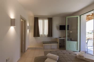 La décoration est plutôt charmante et contemporaine avec des matériaux et des finitions luxueuses et se complète harmonieusement dans des tons ocres. La chambre est dotée d’un lit double king-size et la salle de bains est équipée d’une cabine de douche vitrée. Après vos activités de la journée, vous pourrez vous détendre dans le canapé et vous divertir devant la télé. Si vous êtes en voyage d’affaires, vous pourrez travailler sur le magnifique bureau en pierre et bois. Le tout dans une atmosphère relaxante !