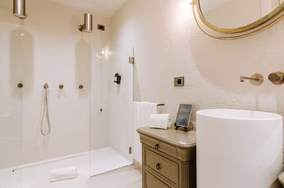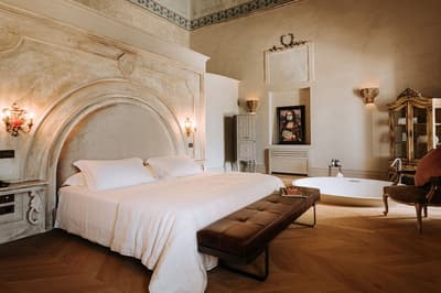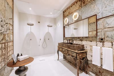 L’ensemble est dans un luxe intemporel avec une touche artistique, un parquet français, des fresques sur les plafonds et une grande attention portée aux détails uniques tels que stucs arabes, fauteuils et armoires chinés sur les marchés d'antiquités du monde entier, lustres majestueux, portes en verre corten avec incrustations de lin et bien d'autres à découvrir. La chambre est dotée d’un lit king-size ou twin et la salle de bains est équipée d’une baignoire et d’une douche. Le tout dans une ambiance raffinée !