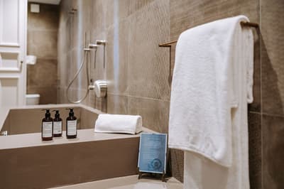 Verre de bienvenue de notre équipe Mixology Bar 700, Souvenir Paragon 700, Wi-Fi haut débit, IPad Pro avec des informations utiles pour votre séjour, Petit-déjeuner à la carte avec un large choix de produits locaux et faits maison, Parking sécurisé sur place, Linge de lit de haute qualité avec une combinaison confortable de couche supérieure 100 % lin pur et couche inférieure avec coton percale doux, Bureau ou coin salon, Ligne de courtoisie naturelle & biologique FRAGRART, Peignoirs et chaussons en lin, Mini-bar avec boissons non alcoolisées, Climatisation et chauffage au sol.