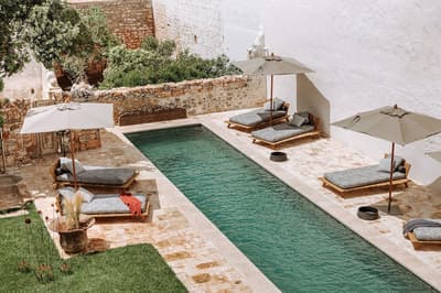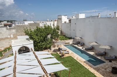Le Paragon 700 Boutique Hôtel&Spa ne passe pas inaperçu ! Dans la ville blanche d’Ostuni, c'est le seul palais peint en rouge. Mais ce beau palazzo du XVIII siècle ne surprend pas que par sa couleur ! Les propriétaires, Pascale et Ulrike, l’ont transformé en adresse hors pair pour les amateurs de design... Vous allez craquer pour les intérieurs éclectiques et colorés, pleins des souvenirs de voyage des proprios. Canapés sur mesure sud-africains, bric-à-brac trouvé sur des marchés d'antiquaires, lampadaires exotiques et miroirs en laiton forment un joyeux mix. Vous resterez scotchés devant les pièces d’art contemporain décalé et les touches fantaisistes, comme les statues de singes sur le bar. Le tout sur fond de fresques et de voûtes en pierre d’époque. En plein centre-ville, vous êtes à l’abri de l’agitation grâce aux jardins, qui renferment une orangerie et une belle piscine... Le Paragon est le seul palazzo d’Ostuni a en avoir une ! Et après une matinée de visites culturelles, vous pourrez déjeuner au resto de la plage, le P-Beach Club, à 19 km. A moins de préférer un moment détente dans le petit spa de la structure. Taillé dans une citerne d'eau souterraine, celui-ci comprend une baignoire d'hydromassage, un bain à vapeur, une douche de chromothérapie et un espace de relaxation revêtu de murs de sel de l'Himalaya. Enfin, le soir, vous profiterez d’un cocktail préparé par un mixologiste au 700 Lounge Bar. #WhatElse !