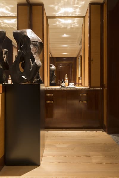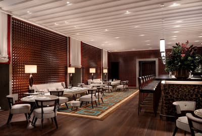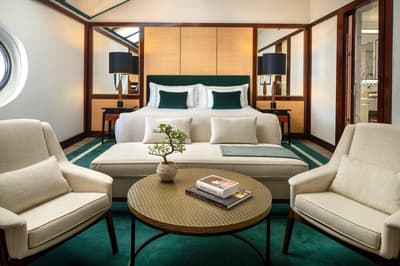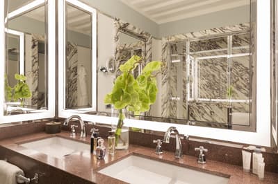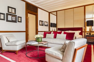 La décoration est chic et raffinée avec un design italien emblématique, des accents rouge cardinal et un dressing spacieux pour des habits impeccables. La chambre peut être dotée d’un lit king ou jumeaux et, dans certains cas, un canapé qui sert également de lit d'appoint. La salle de bains en marbre de Carrare du sol au plafond est équipée d’une très grande douche. Ambiance artistique !
