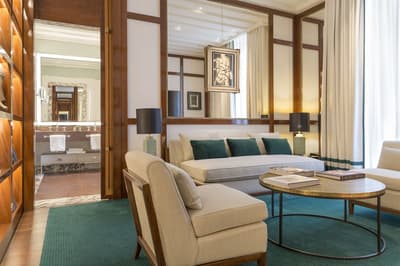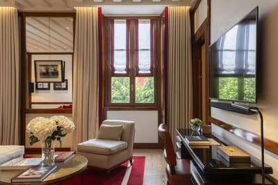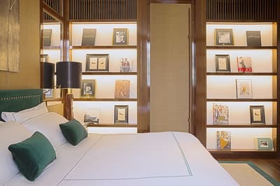 Confortable et fonctionnelle, cette jolie suite comporte un généreux dressing pour des habits impeccables et un salon cosy avec fauteuils classiques chics pour vous détendre, tout en dégustant une bonne tasse de café, après vos activités de la journée. Elle peut également disposer d’une élégante collection de livres d’art et de style de vie, qui rappellent les demeures majestueuses du passé milanais. À noter qu’un berceau peut être ajouté sur demande.