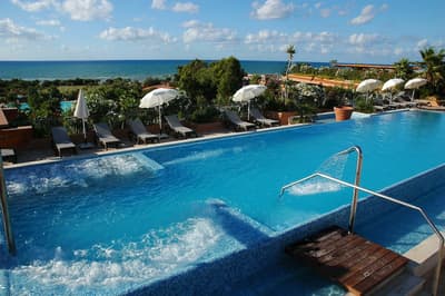 Juste ce qu'il faut d'espace entre vous et la ville ! Amateurs de paix, l'Acacia Resort vous promet des vacances tranquilles — même si vous venez en famille. Situé à environ cinq kilomètres du petit village de Campofelice Di Roccella, l'hôtel a pris ses quartiers le long de la côte, avec la mer à ses pieds pour la touche balnéaire. Entouré d'un jardin d'Eden à la sicilienne, il a tout prévu pour la réussite de votre séjour, et notamment un choix sympa d'activités : entre coup droit au tennis, swing maîtrisé au mini-golf et hydromassage dans la piscine, les plaisirs ne manquent pas ici. De quoi vous détendre ou vous remettre en forme avant d'aller découvrir une destination qui elle non plus ne manque pas d'intérêt. Pour la station balnéaire par excellence, Cefalù, ce sera sur votre droite ! Et sur votre gauche, vous trouverez le chef-lieu de l'île, la grande cité de Palerme, avec ses petites ruelles traditionnelles. Tout ça sur une seule et même côte, celle du nord de la Sicile, qui s'offre à vous sous son jour le plus authentique.