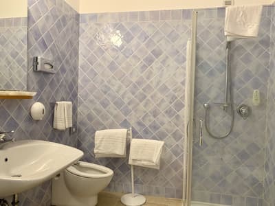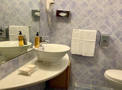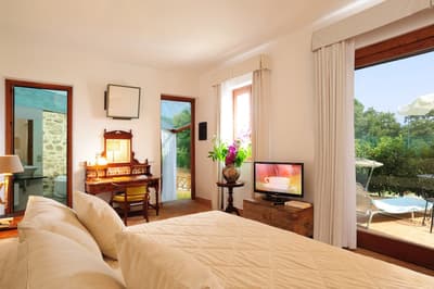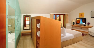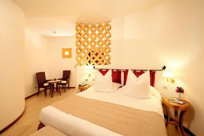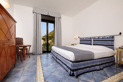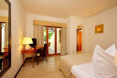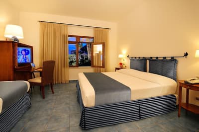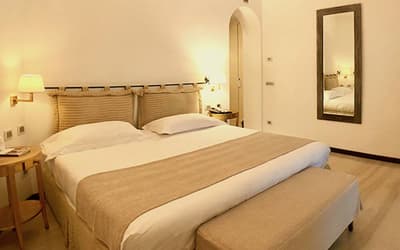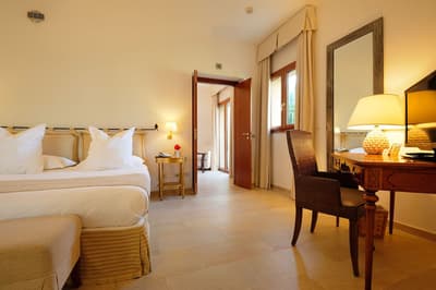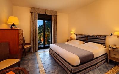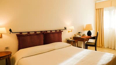 Draps en percale de coton égyptien, Oreillers en plumes d'oie ou hypoallergéniques, Climatisation individuelle, Téléphone, TV Led 32” – 55” avec TV Sat, Wifi gratuit, Coffre-fort à combinaison électronique, Fauteuils en cuir tressé, Bureau, Minibar rempli de sodas, de collations et de spiritueux, Service à thé et café, Sèche-cheveux et miroir de maquillage, Peignoirs personnels en éponge, Service de nettoyage quotidien.