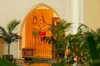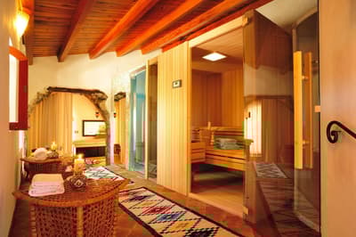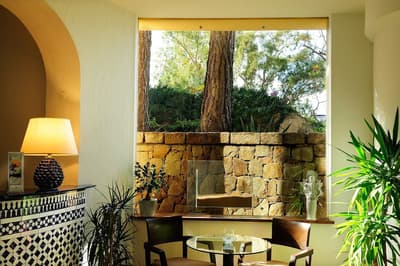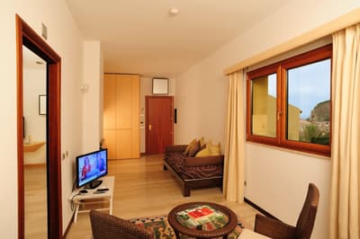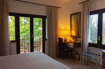 La décoration est plutôt moderne avec un carrelage en terre cuite, un mobilier classique en bois de cerisier et l’ensemble se complète dans des tons beiges. La chambre est dotée d’un lit king et la salle de bains en marbre comprend une baignoire et douche hydromassante. Ambiance relaxante !
