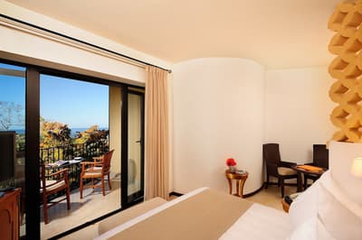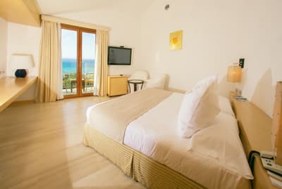 Cette luxueuse chambre profite d’une vue latérale splendide sur la mer et dispose d’un balcon avec mobilier pour prendre votre apéritif et contempler le grand bleu à loisirs. Elle offre les meilleurs services et équipements pour des vacances agréables.