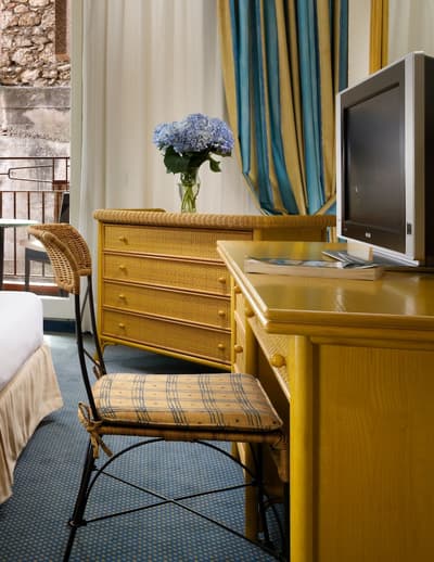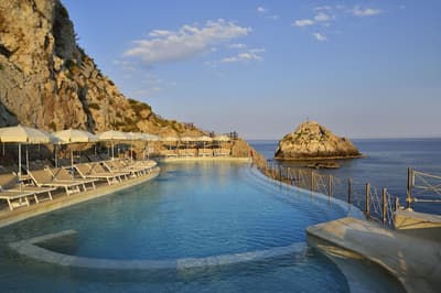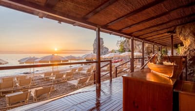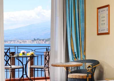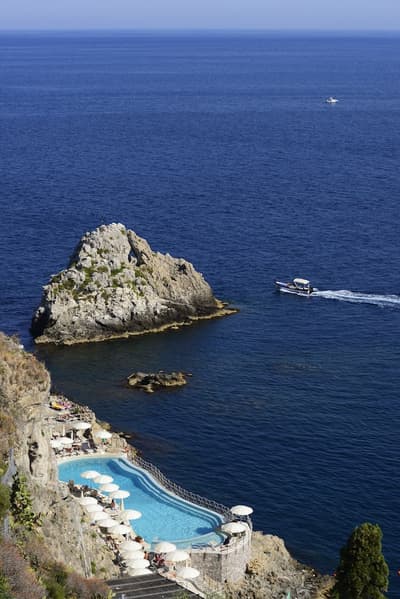 Amoureux de la tradition et du charme d'antan, vous allez être conquis par l'UNA Hotels Capotaormina ! Situé à 3 kilomètres de la ville dont il porte le nom, l'établissement semble tout droit surgi du passé. Mais attention, oubliez le désuet et le démodé : ici, on vous propose plutôt une parenthèse délicate et soignée, loin des modes. Ce qui n'empêche pas l'UNA Hotels Capotaormina de se doter de tous les équipements contemporains pour vous assurer un confort 2.0. Wifi, spa, centre de fitness ultra-moderne, piscine d'eau de mer... : autant d'additions bienvenues à cet hôtel posté sur des roches et les hauteurs du littoral, et qui offre des points de vue sans pareil sur la côte et le Mont Etna. Un Etna qui ne vous lâchera jamais puisqu'il est aussi l'invité d'honneur des salles de resto, toutes tournées vers lui et vers la mer. Quant aux chambres, spacieuses et confortables, elles affichent les couleurs locales : des bleus océan, des jaunes soleil et des verts palmier qui rappellent le paysage et le jardin. Ça y est, vos valises sont posées ? Installez-vous confortablement dans les transats de la plage privée du Capotaormina et faites confiance au staff, il s'occupe de tout...