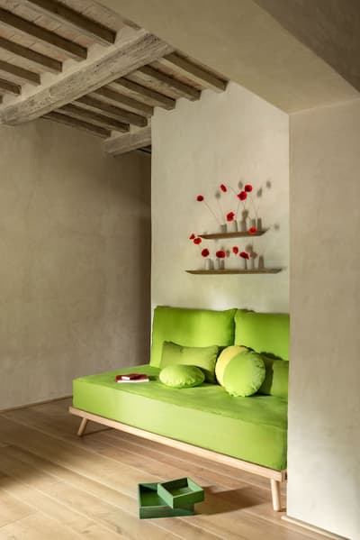 Chut... Cette adresse, gardez-la bien secrète, car vous voudrez en profiter sans partager ! Tant pis si c’est un poil égoïste ! Dans un jardin de chênes centenaires se dresse l’ancienne abbaye Badia di Pomaio. Vous êtes tout de suite envahis par un sentiment de sérénité. La sublime bâtisse, transformée en boutique-hôtel en 2019, dégage un charme irrésistible ! La designeuse d’intérieur Ilaria Miani a conservé tous les éléments d’antan : poutres apparentes, voûtes, décorations en fer forgé et carreaux de terre cuite. Elle y a associé du mobilier design et des luminaires modernes qui subliment le lieu. Le raffinement du goût italien par excellence, mélangeant tradition et modernité ! Tous les matériaux sont naturels et dans des tons clairs, avec des touches de couleurs suggestives. Déclinaison de verts pour évoquer la nature environnante, vases et objets déco pomme, vert eau, turquoise, olive... Canapés, fauteuils et coussins mandarine, citron ou cacao... Les lignes, elles, sont ultra-simples : l’utilisation ingénieuse de la perspective permet d’avoir des vues sur l’extérieur depuis partout ! Passez dans le bar, avec plafond en verre, toile de jute douce en guise de pare-soleil, lin souple pour les divans. Vous sortez sur la terrasse... Et voici l’ultime raison de poser vos valises ici à jamais. La piscine à débordement, adossée à un bosquet de chênes, avec vue panoramique sur la ville d’Arezzo. Allez, ciao ! #DreamPlace