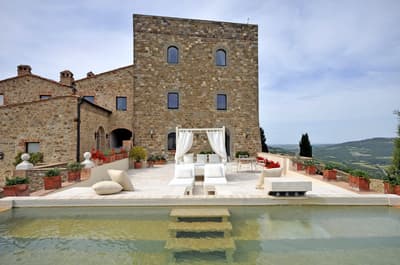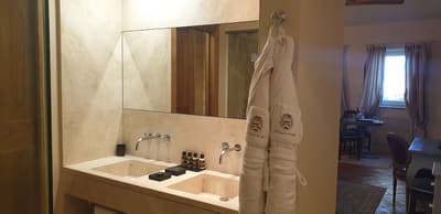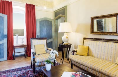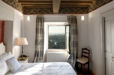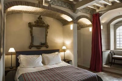 Rénovée dans un style toscan élégant et chaleureux, elle peut comprendre des poutres apparentes en chêne ou des plafonds voûtés, une cheminée et une terre cuite florentine. La chambre est dotée d’un lit confortable matelas Simmons et la salle de bains originale du château est équipée d’une douche à l'intérieur de la baignoire. Ambiance médiévale !