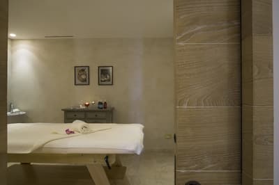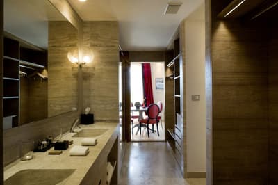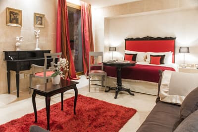 Élégante et raffinée, elle comprend un mobilier de style toscan d'origine Castle, un sol en terre cuite et se complète harmonieusement dans des tons neutres. La chambre est dotée d’un lit king size avec matelas Simmons et la salle de bains en marbre peut être équipée d’une douche dans la baignoire, douche et baignoire séparées, un lavabo simple ou double, un jacuzzi, ou de l'eau thermale pour la baignoire. Ambiance médiévale !