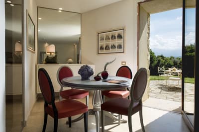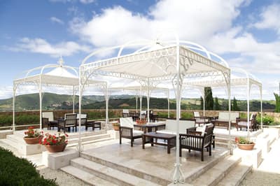 Idéale pour un séjour en amoureux, elle profite d’un patio ou d’une terrasse pour vous détendre, prendre votre apéritif tout en contemplant la vue magnifique sur le Val d'Orcia et les vignobles de Brunello di Montalcino qui entourent le Château.