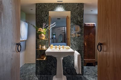 Elle arbore un design traditionnel toscan et comprend des planchers de bois d’olivier, un mobilier haut de gamme et se complète harmonieusement dans des matières et des accessoires nobles. Elle comporte également une cave privée pour vos moments festifs. La chambre est dotée d’un lit king size et d’un lit bébé et la salle de bains royale faite de marbre jaune rare de Sienne est équipée d’une baignoire et douche à effet pluie. Ambiance zen !